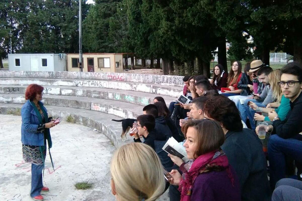 Članovi Građanskog čitalačkog kluba "Otpor" razgovarali su o priči Dostojevskog "San smiješnog čovjeka“ u gimnazijskom amfiteatru sa profesoricom književnosti Vesnom Pavićević.