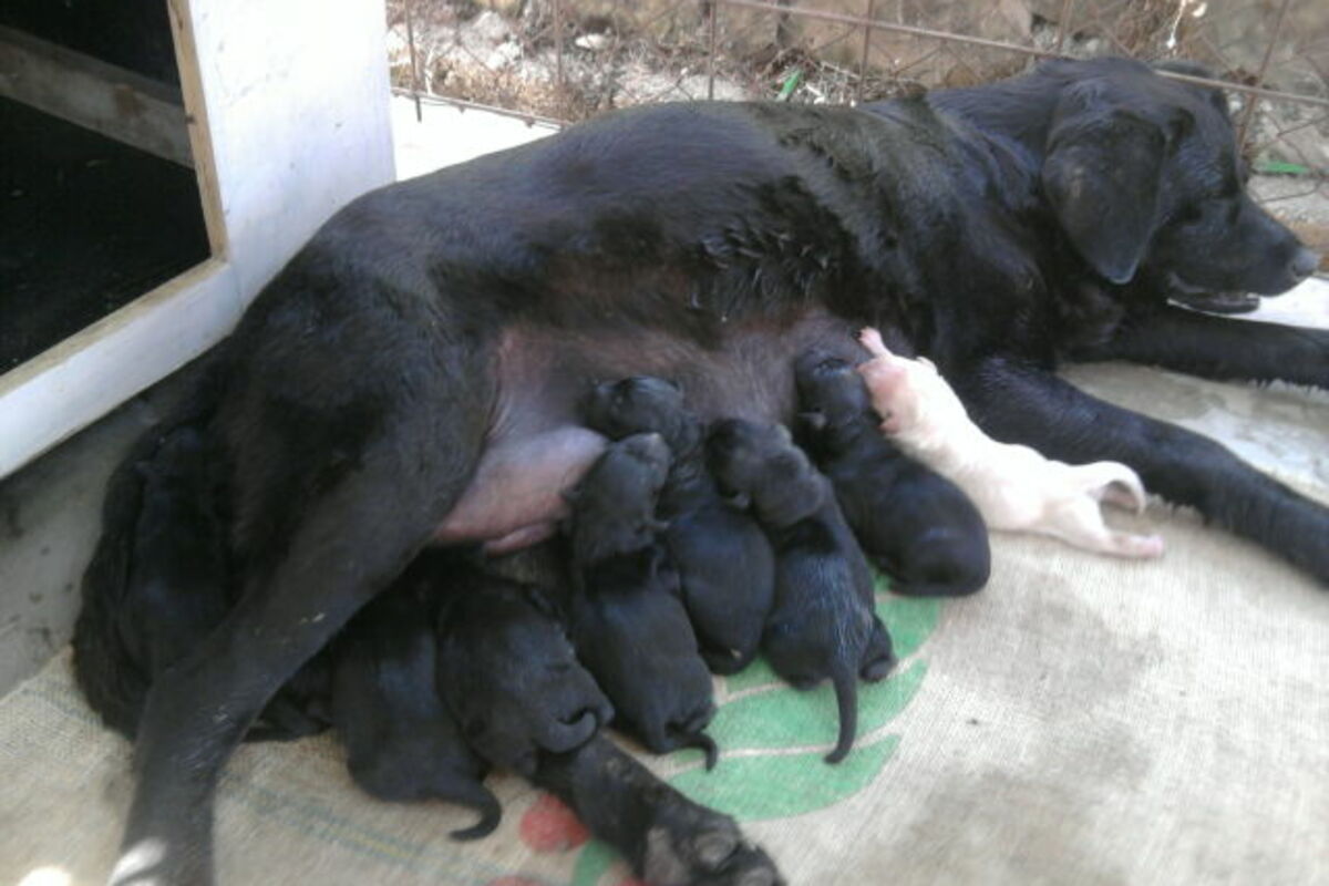 Ženka crnog labradora po imenu Bela oštenila je rano jutros u Baru deset štenaca.