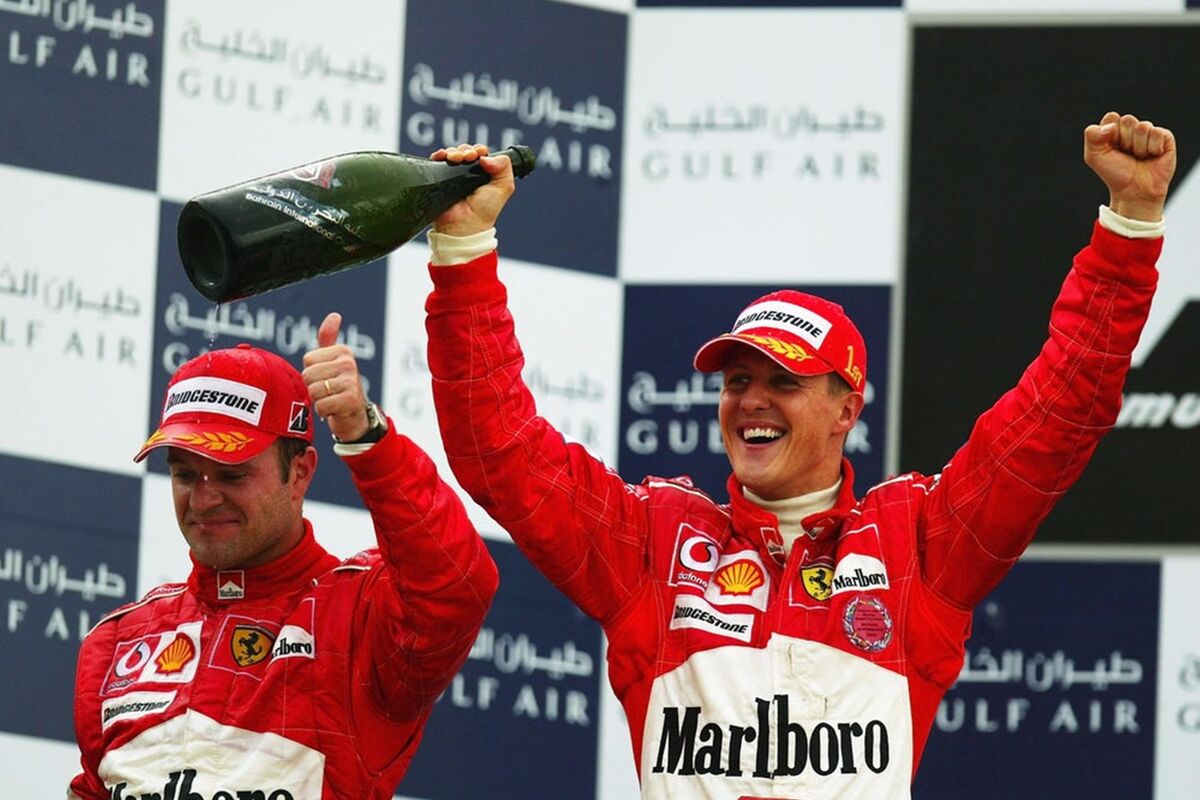 Mihael sa suprugom Korinom nakon VN Španije 2004.Ako je Šumaher kao mlad bio željan pobjeda i nije birao sredstva, onda ga ništa ne opravdava da u periodu kad je postao najuspješniji napravi ovakav potez.