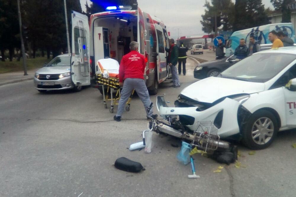 Jedna osoba je povrijeđena u udesu motora i automobila, koji se dogodio danas na Bulevaru Ivana Crnojevića.