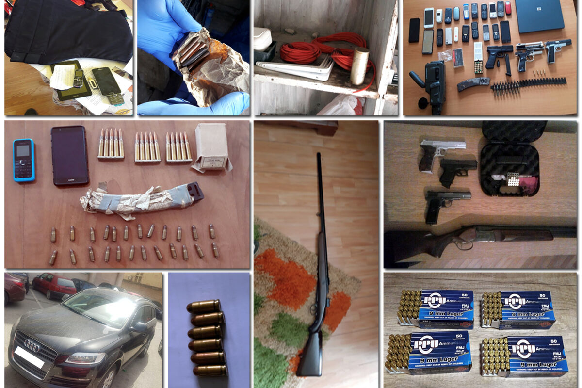 Policija je prilikom pretresa pronašla i oduzela: šest pištolja različite vrste i kalibra, dvije puške, više komada pištoljske i puščane municije, nekoliko okvira za municiju, šest elektronskih detonatorskih kapisli, 15 metara štapina, više komada sredstava za komunikaciju, pancir i vozilo, saopšteno je iz Uprave policije.