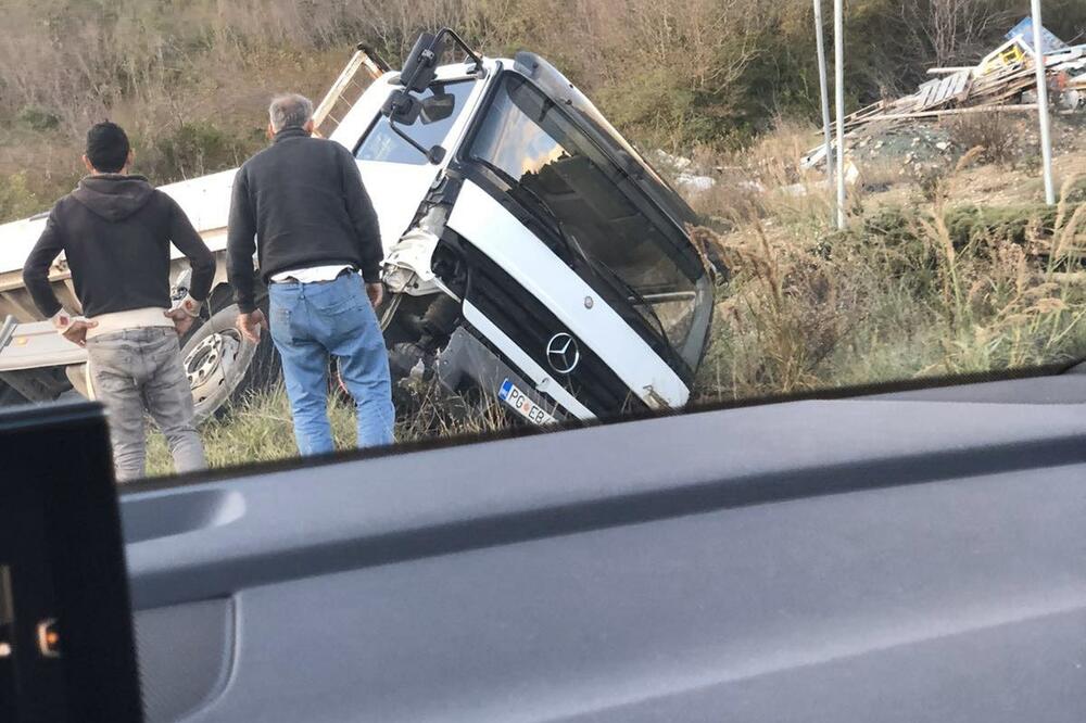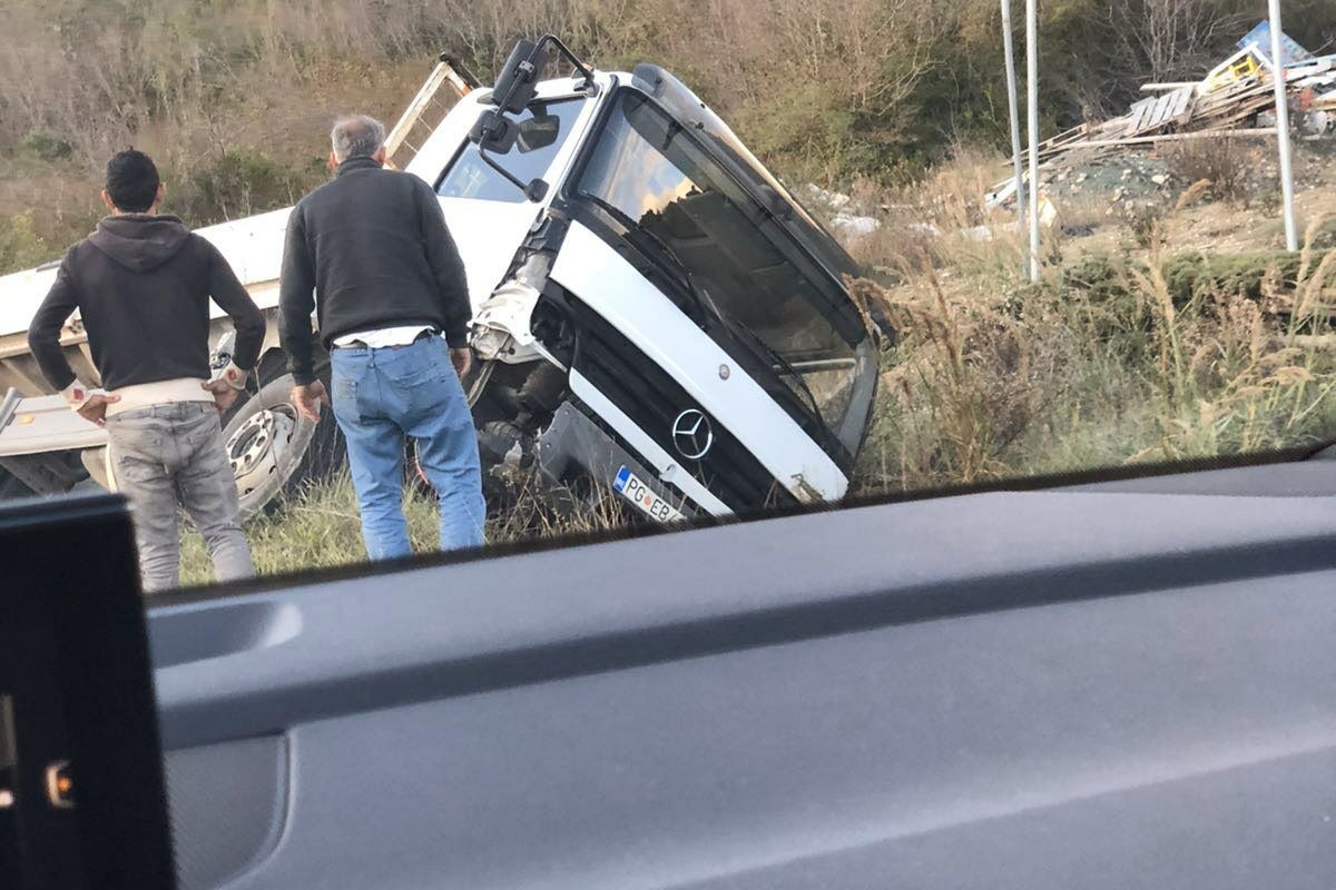 U Kovačkom polju na putu Budva Tivat došlo je do saobraćajne nezgode u kojoj je kamion sletio sa kolovoza i završio u jarak.