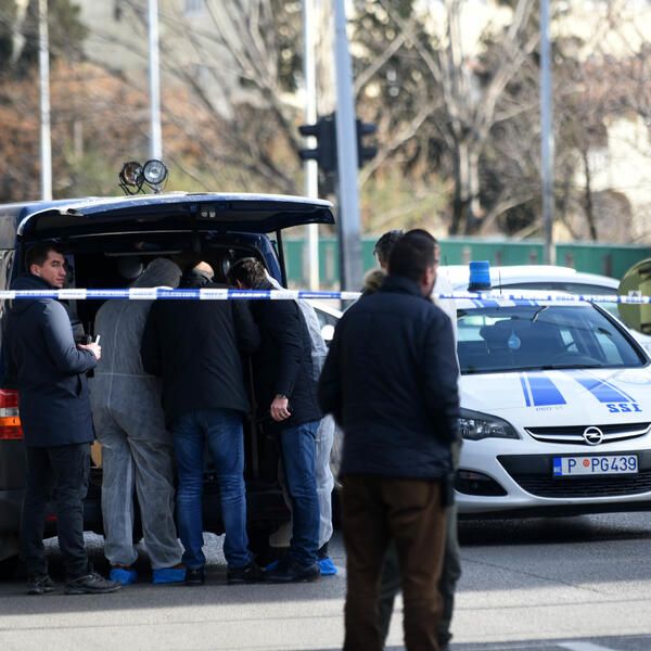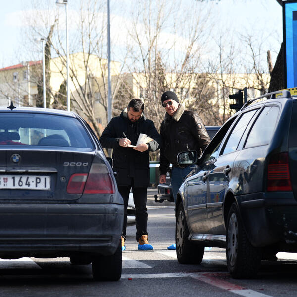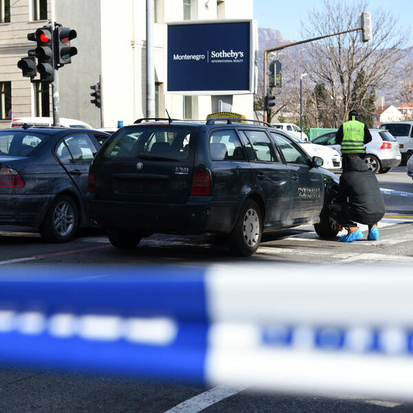 Reporteri "Vijesti" na raskršću su zatekli dva automobila zagrađena policijskom trakom, lokvu krvi na asfaltu i kriminalističke tehničare koji su prikupljali tragove.