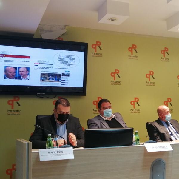 Novinarima je prikazala slajd na kom su isječci iz medija, objavljeni u prethodnom periodu, objasnivši da su na taj način predstavnici izvšne i zakonodavne vlasti pravili pritisak na SDT i Katnića, ali da su oni u tom periodu uprkos tome napravili značajne rezultate.