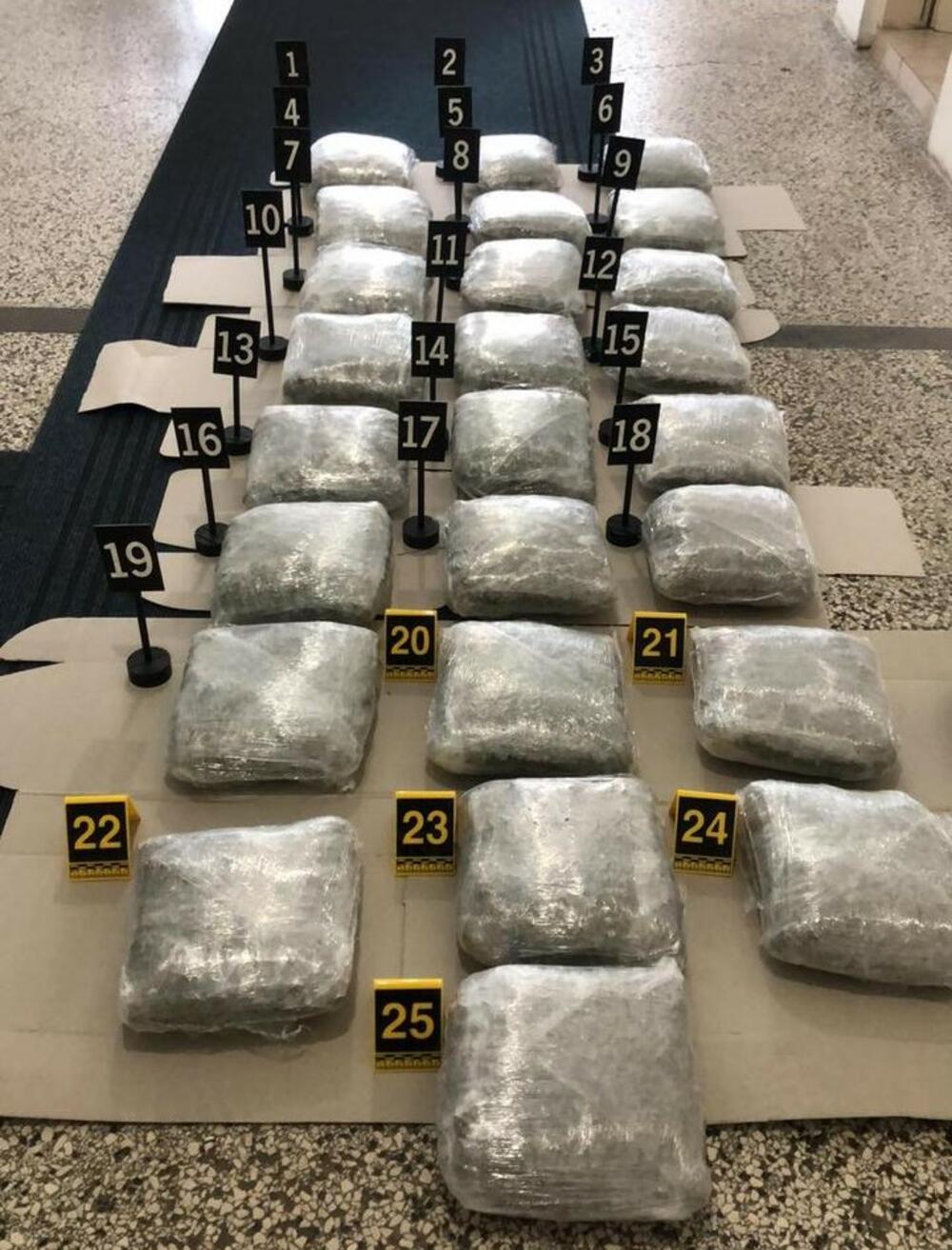 Granična policija je, dodaje se u saopštenju, nedaleko od tog graničnog prelaza, prilikom preduzimanja aktivnosti na obilasku zelene granice, pronašla odbačenu torbu u kojoj se nalazilo više pakovanja sa sadržajem biljne materije tamnozelene boje za koju se sumnja da je marihuana, ukupne težine od oko 27,7 kilograma.