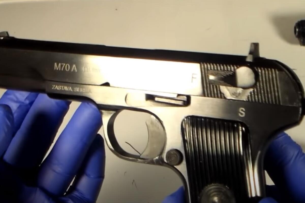 U saopštenju se dodaje da je pregledom osoba i vozila kod suvozača S.M pronađen pištolj marke Zastava Arms model M70A 9 mm Luger, sa okvirom i šest komada municije, kao i lovački nož.