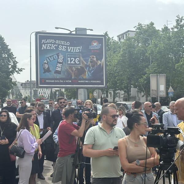 Više desetina advokata okupilo se ispred Osnovnog suda u Podgorici u znak protesta i zbog napada na njihovog kolegu Aleksandra Simonovića.
