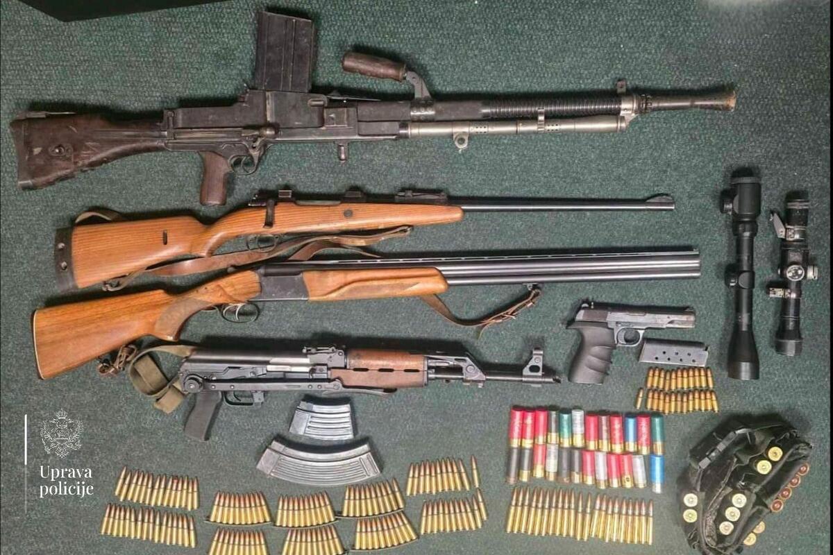 Policija je, u pretresima na deset lokacija u Nikšiću, Šavniku, Plužinama i Pljevljima, pronašla i oduzela sedam komada vatrenog oružja – puškomitraljez, automatsko oružje, puške i pištolje, 341 komad municije, tri automobila, marihuanu i tablete sa liste opijata.