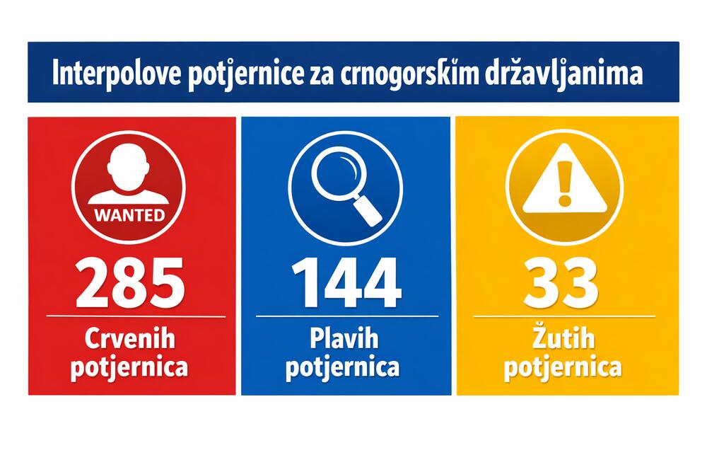 Ukupno 285 crnogorskih državljana nalazi se na aktivnim međunarodnim, takozvanim crvenim potjernicama Interpola, a najčešće se raspisuju zbog šverca droge, stvaranja kriminalne organizacije i teških krađa.
