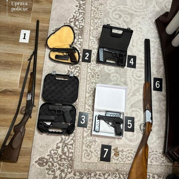 U saopštenju piše i da je policija u Šavniku pretresla objekte koji koristi M.M. gdje je pronađena i oduzeta puška, malokalibarski pištolj, 118 komada municije različite vrste i kalibra, kao i kutija od ručne bombe.