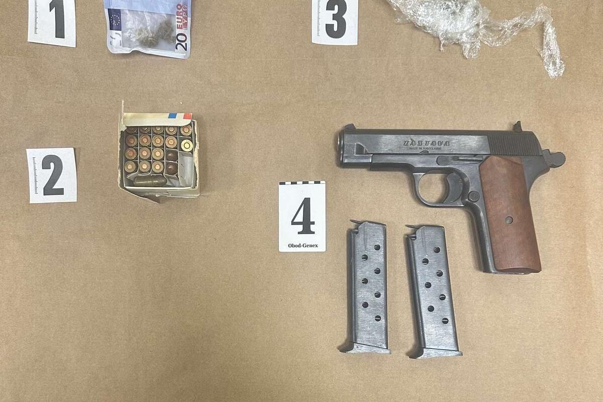 Iz Uprave policije je saopšteno da su njihovi službenici pronašli i oduzeli dva manja pvc pakovanja sa sadržajem marihuane, pištolj "Zastava M88 PARA", u ilegalnom posjedu, kao i 19 komada municije.