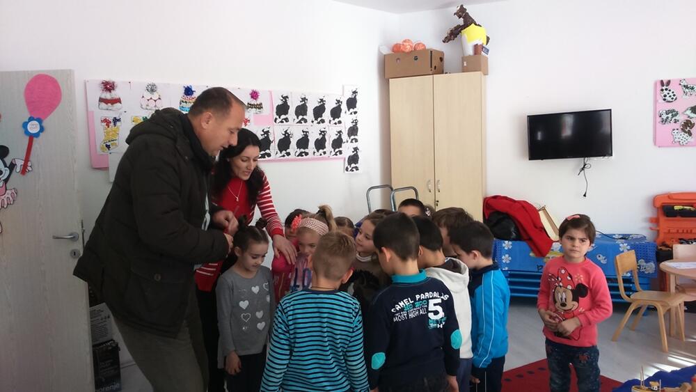 U vrtiću, koji je sa radom počeo u februaru ove godine, u tri vaspitane grupe upisano je 58 djece, a mališani su predsjedniku MZ poklonili komplet knjiga Iva Andrića.