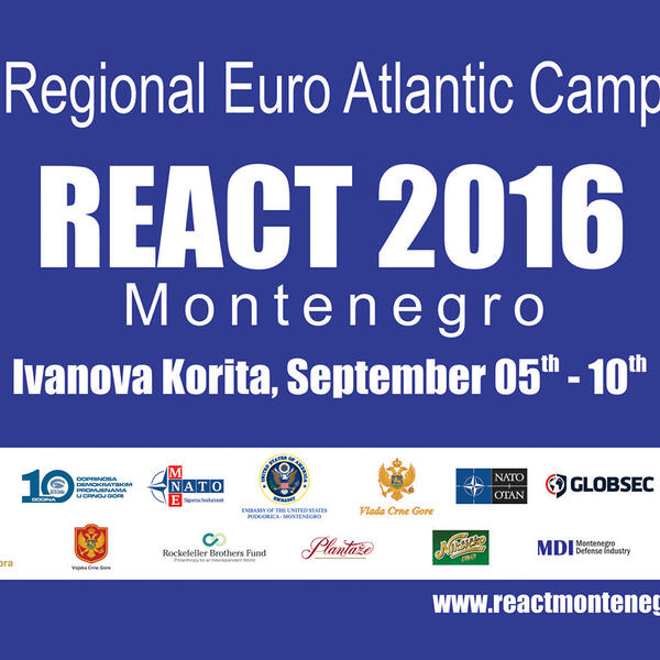 Regionalni evroatlantski kamp „React“, deveti po redu koji organizuje NVO „Akfa centar“, biće održan od 5 do 10.septembra na Ivanovim koritima. Ovogodišnji kamp, koji je najbrojniji do sada i na kome učestvuje 65 kandidata iz Crne Gore i 55 iz inostranstva, kao i 38 predavača, posvećen je jubileju obnove nezavisnosti Crne Gore i deceniji rada “Alfa centra”.