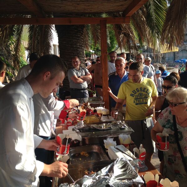 I dok su se najmlađi zabavaljli, na rivi uz plažu, na nekoliko postvaljenih punktova, pripremano je lokalno jelo - specijalitet brodet.
