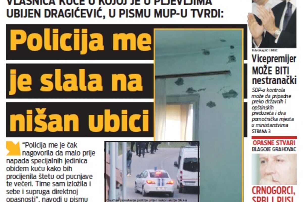 Vlasnica kuće u kojoj je ubijen Goran Dragićević tvrdi da je policija ugrozila njen i život njenog supruga, kada su je čuvari reda noć prije likvidacije poslali da obiđe kuću u kojoj se krio dvostruki ubica.