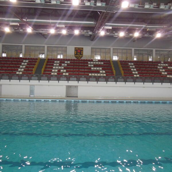 Gradnja bazena, koji je preslikani minhenski olimpijski bazen, počela je 1972. godine, a počeo je da radi 18. septembra 2000. Radio je do 22. decembra pomenute godine, da bi ponovo bio aktiviran u maju naredne godine. U oktobru 2001. godine je prestao sa radom, a osnovni razlog bio je nedostatak vazdušnog grijanja. Za potrebe Evropskog kadetskog prvenstva u rukometu 2010. godine bazen je privremeno osposobljen za trening dvoranu.