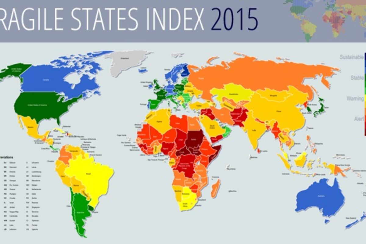 Najveću opasnost svjetskom miru i stabilnosti predstavljaju Južni Sudan, Somalija, Kongo, Čad, Jemen, Sirija i Avganistan, ističe FSI, dok su s druge strane najstabilnije zemlje Skandinavije, prije svega Finska.