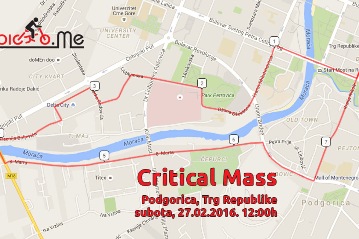 Tradicionalno na Trgu Republike u Podgorici u 12 sati, ovaj Critical Mass je posvećen dosadašnjim i budućim učesnicima koji su izglasali maršrutu za februarsku vožnju.