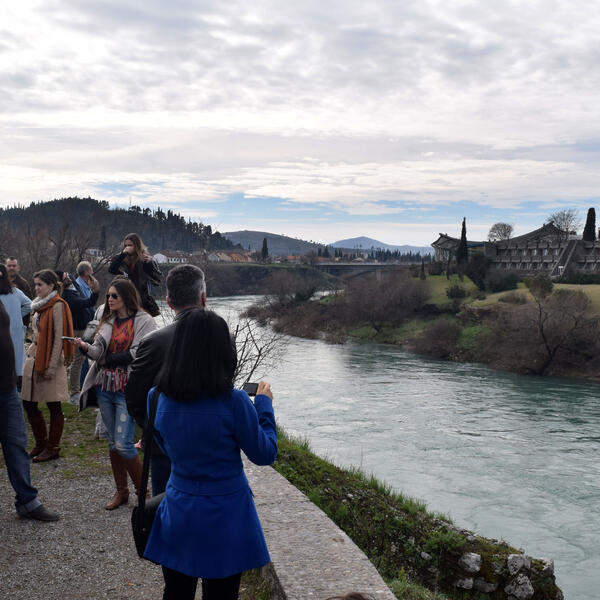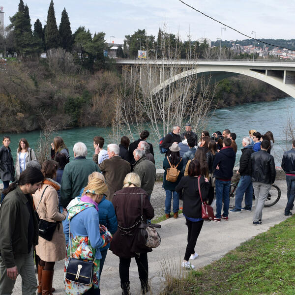 Grupa je prošetala do Tabačkog mosta, a zatim i do nekadašnjeg hotela „Crna Gora”, gdje su u toku radovi na hotelu “Hilton”.