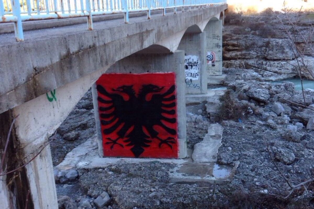 Simbol Albanije, dvoglavi crni orao na crvenoj podlozi, nacrtan je na stubu mosta prije tri godine.