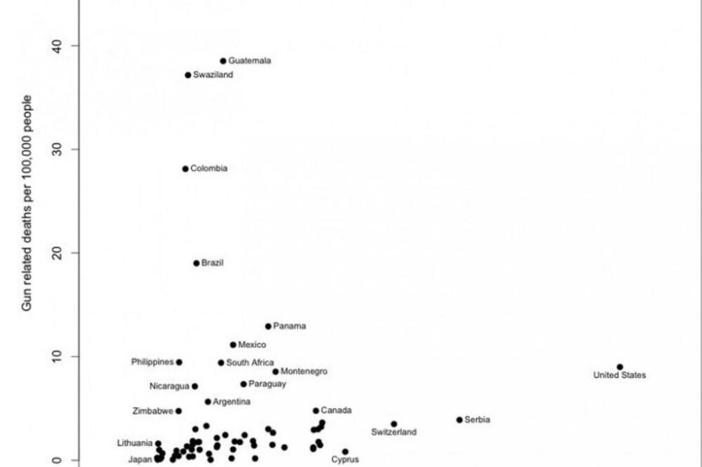 Ovo je istraživanje "Tewksbuty lab-a", na uzorku od 100.000 gađana u Crnoj Gori ima 9 stradalih od vatrenog oružja (godišnji nivo).