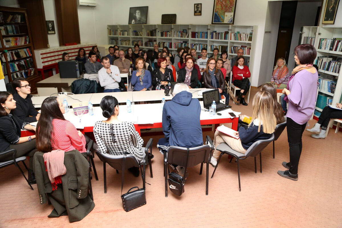 U čitaonici gradske biblioteke “Ivo Vučković”, program prve tribine vodili su maturanti Gimnazije “Niko Rolović” Miloš Đuranović, Mirela Čobić, Ivana Mašanović i Barbara Brzić.