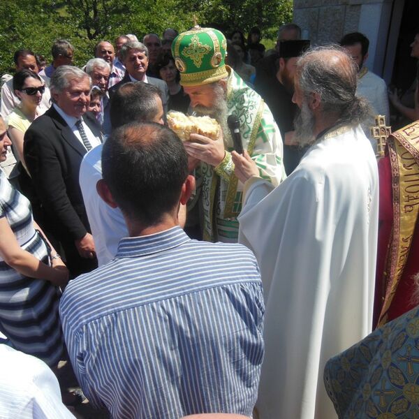Nakon pričešća okupljenih osveštan je i prerezan slavski kolač koji je donio ovogodišnji domaćin Radojica Blečić, dok će naredne godine domaćin biti Željko Mitrić.