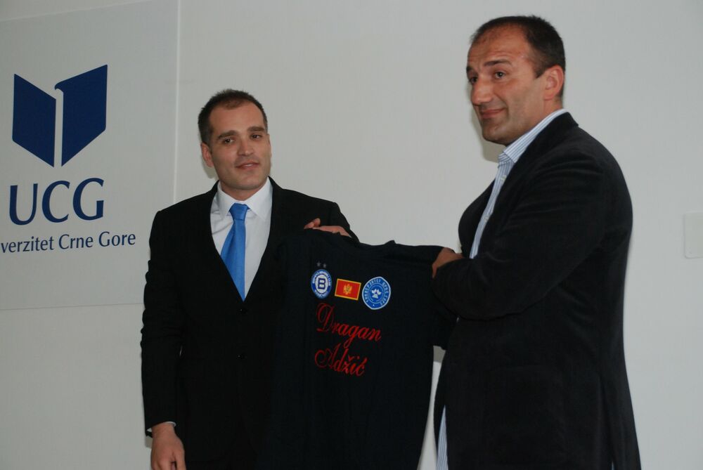 Dragan Adžić, trener ženske rukometne reprezentacije Crne Gore i ekipe „Budućnosti“, kome je dekan fakulteta poklonio majicu sa njegovim imenom, uručio je diplome svršenim i najboljim studentima.
