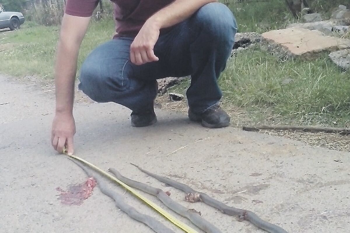 Joličić tvrdi da je prije dva dana oko 16 časova, kada se vratio sa posla, čuo vrisak djece iz komšiluka, koja su se uplašila velike zmije.