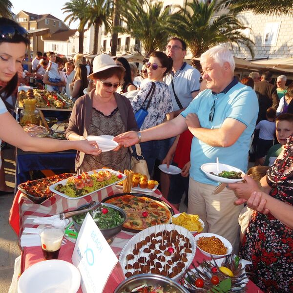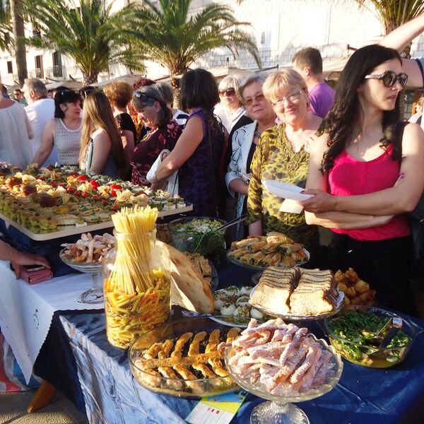 Na bijeli kamen novih Pina, ispod u Francuskoj dizajniranih modernih kandelabra javne rasvjete, te ispred klupa od mahagonija i tikovine, dah Mediterana i autentičnosti Boke donijela su jela od žućenice kojih je na 25 štandova bilo nekoliko stotina.