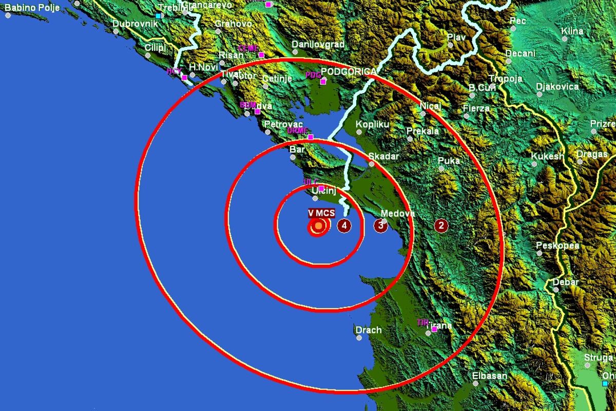 Epicentar zemljotresa bio je 14 km južno od Ulcinja, na dubini o 11 km.