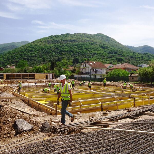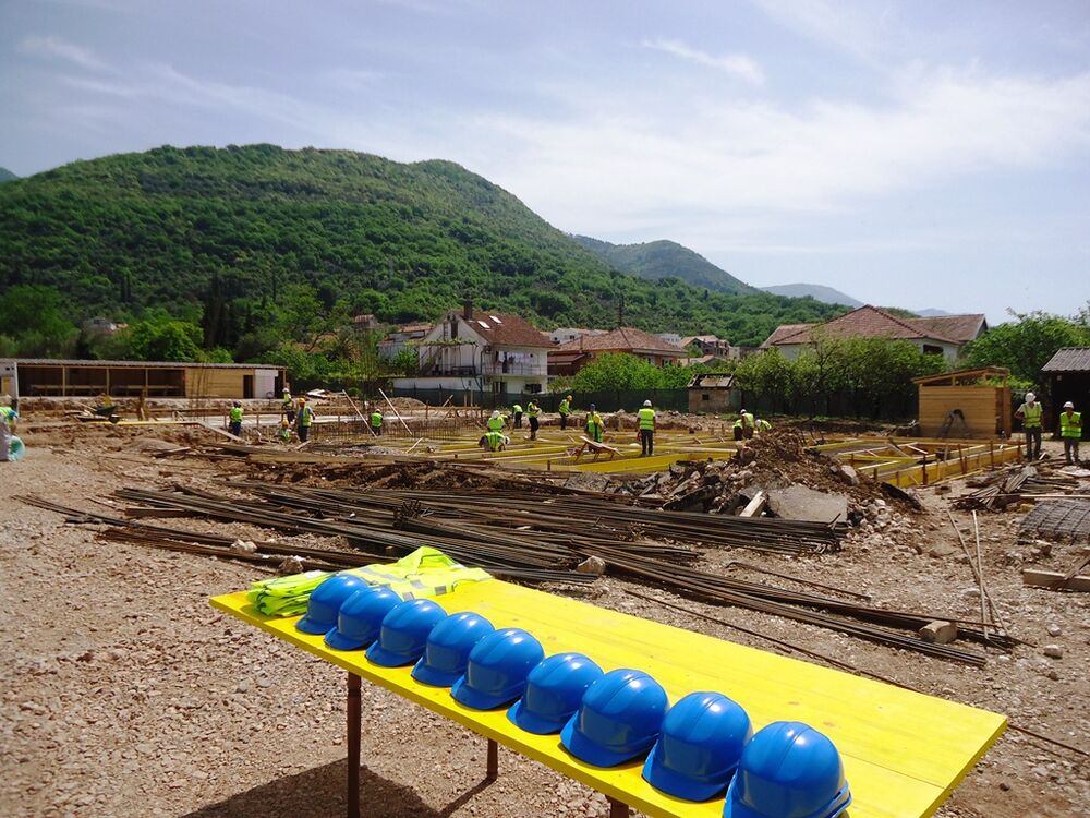 Kamen-temeljac su položili gradonačelnik Tivta Ivan Novosel i predsjednik Borda direktora Crnogorskog fonda za solidarnu stambenu izgradju (CFSSI) Danilo Popović.