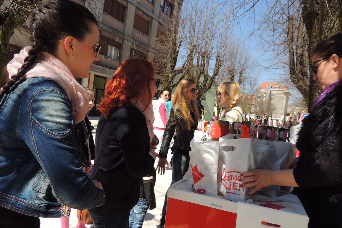 Forum žena SDP Cetinje organizovao je na Gradskom trgu podjelu crvenih ruža sadnica.