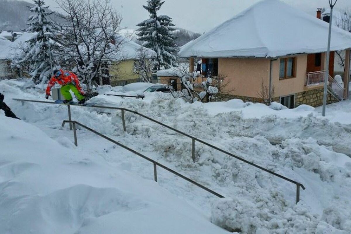 Grupa italijanskih snoubordera danas su u centru Kolašina prolaznicama prikazala dio svojih vještina na snijegu.