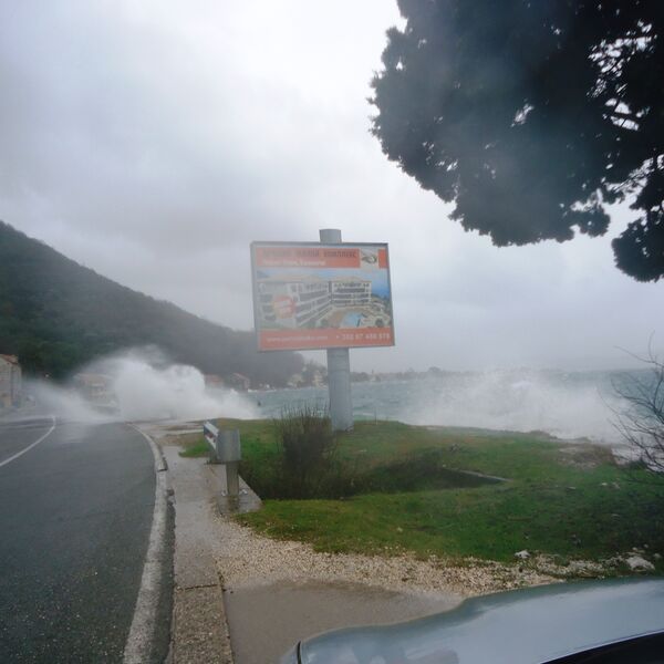 Morski talasi povremeno su se prelivali preko Jadranske magistrale na Opatovu, dok je obalni put kroz Donju Lastvu bio potpuno poplavljen morem u kojem je ostalo i nekoliko automobila parkiranih na mjesnoj rivi.