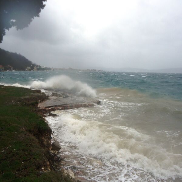 Veliko nevrijeme sa jakim južnim vjetrom i kišom, nije danas pričinilo veće probleme u Tivtu.