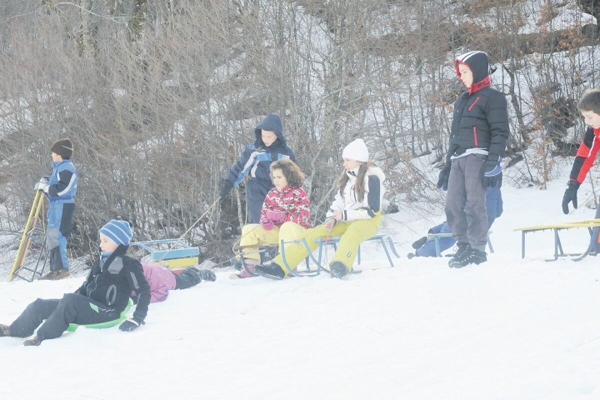 Osnovci su se sankali na padinama Veruše i radosno trčali po snijegu, dok su instruktori i obezbjeđenje pazili da se neko ne povrijedi.