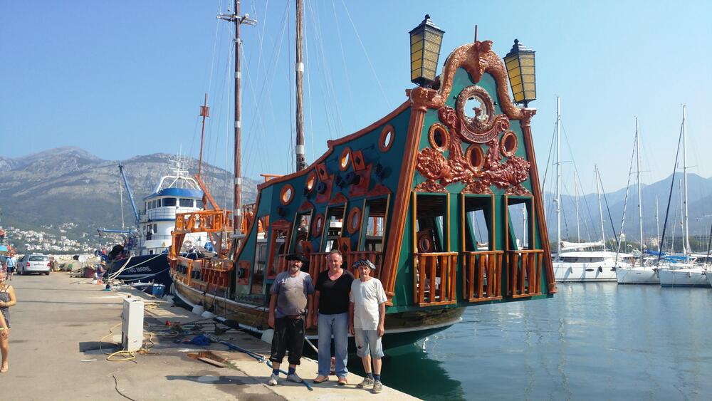 “Sa pokojnim bratom sam došao na ideju da zajedno napravimo ovakvu imitaciju galeona koja bi onda služila u turističke svrhe. Za to smo od vojske kupili stari rashodovani lučki remorker da posluži kao osnova za novo plovilo, ali nas je Krstova smrt spriječila da to i realizujemo. Dugo godina je prošlo dok se nisu ‘sklopile sve kockice’ i dok nisam našao perfektnog partnera za ostvarenje tog poduhvata u liku Saše Kuljače, vlasnika guleta Sveti Stefan iz Budve. On je uložio svoj brod, dao mi potpunu slobodu da realizujem moje zamisli, a ja prionuo na posao i nakon više od 500 dana i noći, izradio gotovo sve djelove koje upravo montiramo na gulet i mijenjamo mu izgled u nešto vrlo slično starom španskom galeonu iz 16. vijeka”, kaže Knežić, koji na trenutak, da bi ugostio novinara “Vijesti”, prekida rad na brodu na kojem su još na sve strane razne alatke, djelovi drveta i nemontirane opreme, šarafi, brokve, čelične sajle i limovi...