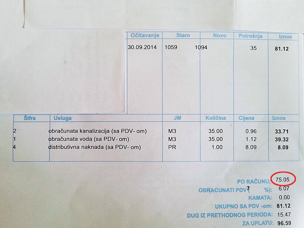 Prosječna četvoročlana porodica, koja je potrošila od 20 do 35 kubika vode dobila je juče račune u iznosima od 60, pa do nevjerovatnih 90 eura.
