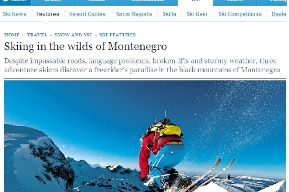Uprkos neprohodnim putevima, jezičkim barijerama, pokvarenim liftovima i lošem vremenu, trojica planinarskih avanturista našli su svoj “freerider” raj u planinama Crne Gore, piše britanski Telegraf. Britanski planinari su sletjeli u Split, odakle su preko Dubrovnika i Kotora krenuli za Žabljak. “Konačno, u istorijskom primorskom gradu Kotoru, nalazimo prvi putokaz na Žabljak. Nema nijedne ulične lampe da osvijetli put kroz beskrajne tamne šume i počinjemo da razumijemo odakle je država dobila ime. Na kraju, u jutarnjim časovima dolazimo na Žabljak”, pišu ovi Britanci u tamošnjem tiražnom listu.
