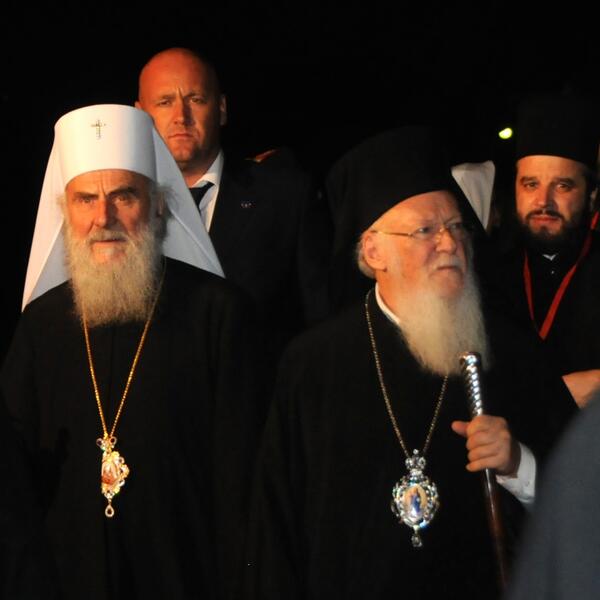 Pravoslavni prvojerarsi na čelu sa Patrijarhom vaseljenskim Vartolomejem stigli su pred Saborni hram u 20 časova gdje im je priređen svečani doček.