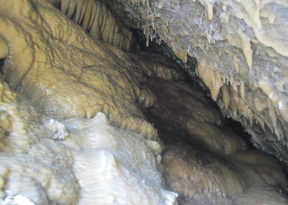 Na jednom dijelu sijali su se kristalno bijeli djelovi stijene, a samo koji metar dalje, u usjeku visokom oko dva metra, ali uskom za prolaz ljudi, braonkasti viseći nakit koji podsjeća na stalaktite.