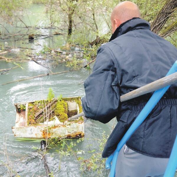 Reporteri "Vijesti nedjeljom" prisustvovali su čišćenju kanala Morače, odakle je Petranović pokupio desetak džakova smeća i izvadio tri zamrzivača.