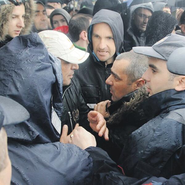 Dvadesetak najuopornijih, mahom mlađih Dinošana, koji su po svaku cijenu željeli da spriječe održavanje saučešća, jake policijske snage potisnule su ka školi. Nakon kraćeg guranja, uz upotrebu pendreka, ali i psovke, policija je probila kordon, a mladići su uzvratili kamenicama nakon toga.
