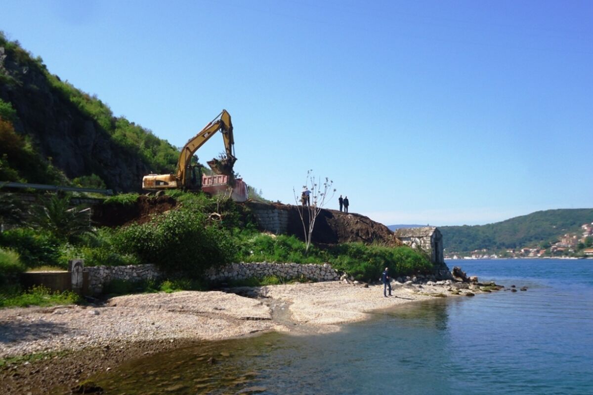 Mehanizacija građevinske firme „YU Briv“ iz Kotora počela je danas otkopavanje male crkve Gospe od Snijega u tjesnacu Verige blizu Lepetana.