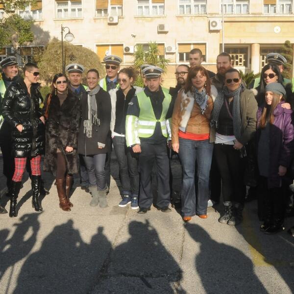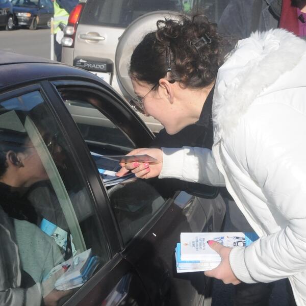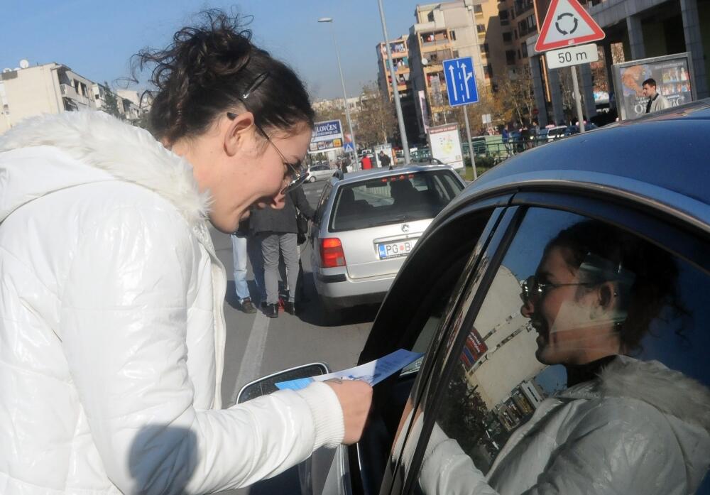 Službenici Uprave policije sa javnim ličnostima i novinarima oko podneva paralelno u šest crnogorskih gradova dijelili su flajere vozačima i pješacima, u okviru kampanje "Upoznaj saobraćajne propise“.
