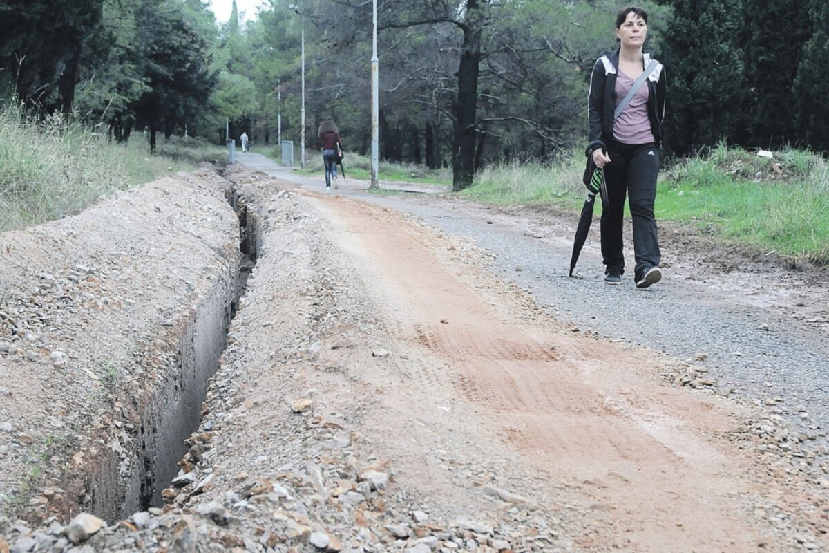 Radnici Elektrodistribucije započeli su kopanje od kapije na sjevernoj strani Gorice. Nakon 50 metara obustavili radove, a iskopana zemlja suzila je ionako uzanu saobraćajnicu kojom prolaze stanovnici, učenici osnovne škole i rekreativci.