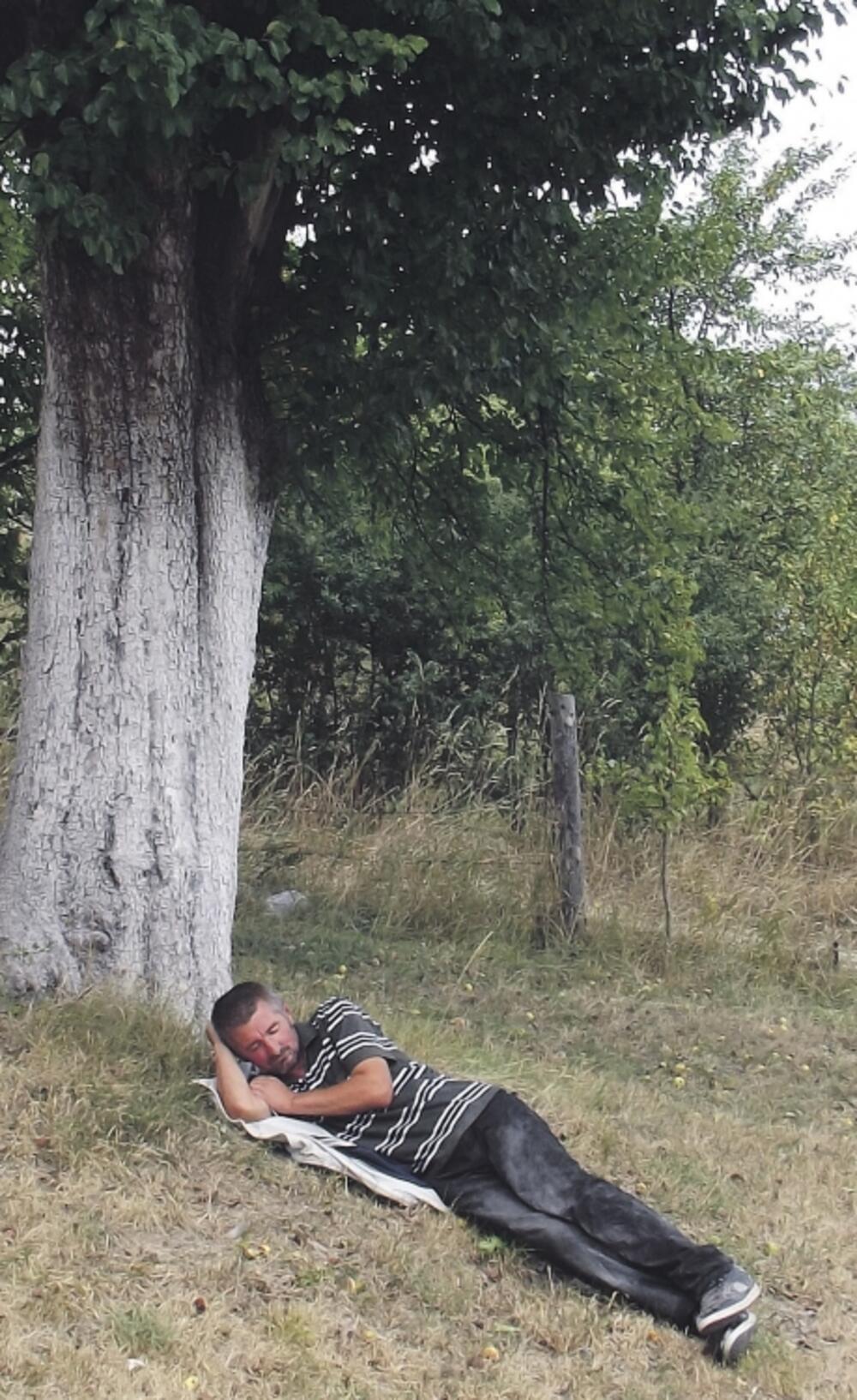 „Svi mole Boga da padne kiša, a ja da bude sunčano. Za sada mi je toplo pod ovom krošnjom stogodišnje kruške gdje spavam, a kad dođe zima, ne znam šta da radim, možda uradim nešto od sebe, da prekratim muku“, kaže Kovačević, dok razgovaramo u hladovini njegovog novog doma.