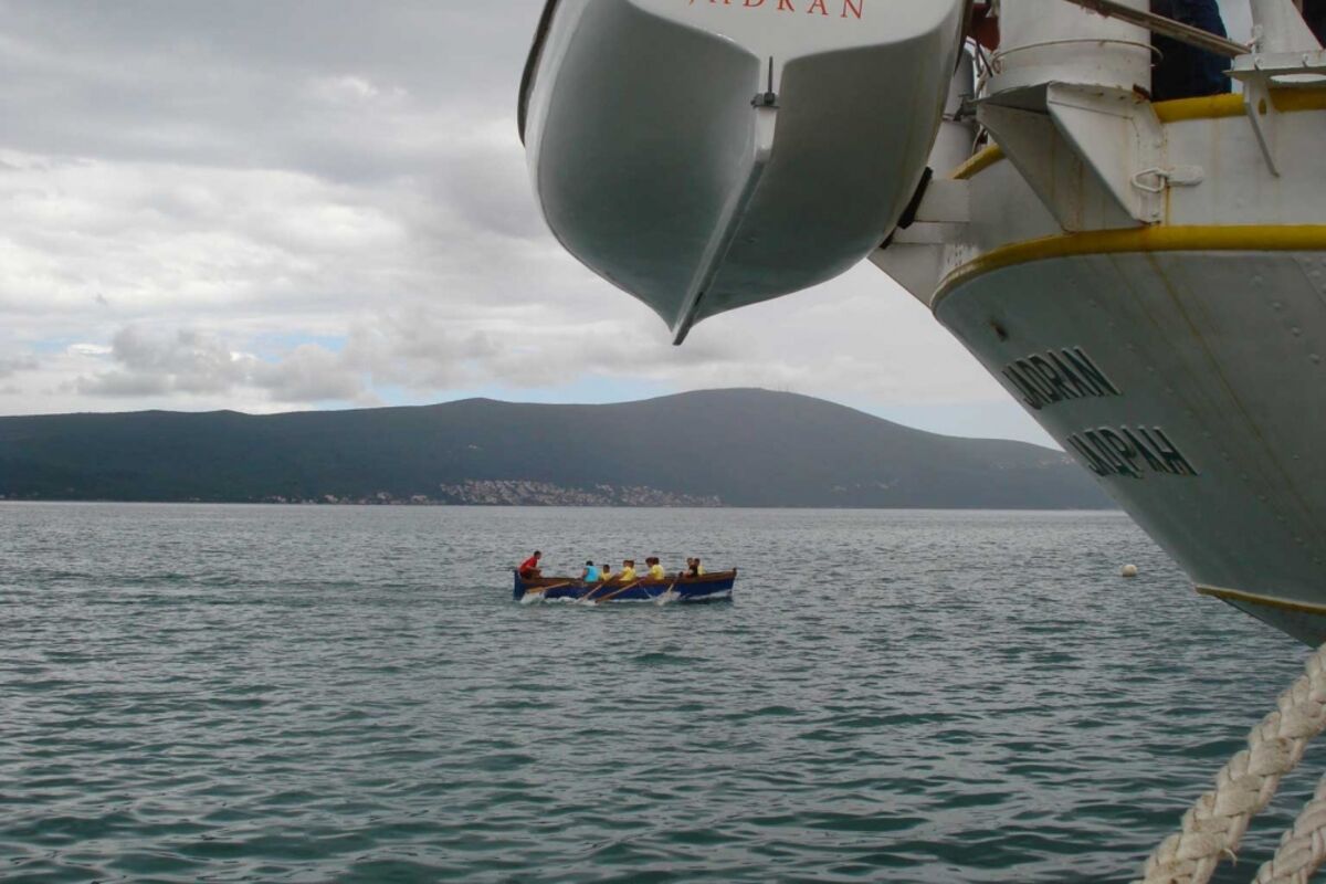 Tako su tri nekadašnja vojna čamca, a koja već godinama pripadaju SPŠ Kotor, u Tivat pred regatu iz Kotora dotegljeni remorkerom LR 77 MCG, dok je ekipa školskog broda "Jadran" nastupila u "svom" kuteru koji je dio opreme tog broda.