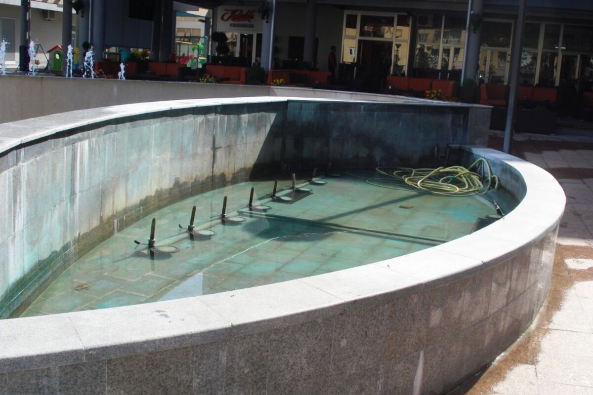 Stoga je trenutno taj segment fontane pun kišnice, a vlasnici okolnih ugostiteljskih objekata koji su kupili nove pumpe za rad fontane ne mogu ih ugraditi zato što voda iz bazena nema gdje da otiče.